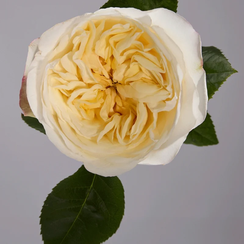 Our Fatima Gardens is a cream-colored, garden-style rose known for its lush, elegant blooms. Its soft, neutral tone makes it a versatile choice for any type of arrangements, adding a timeless and iconic touch to any space.