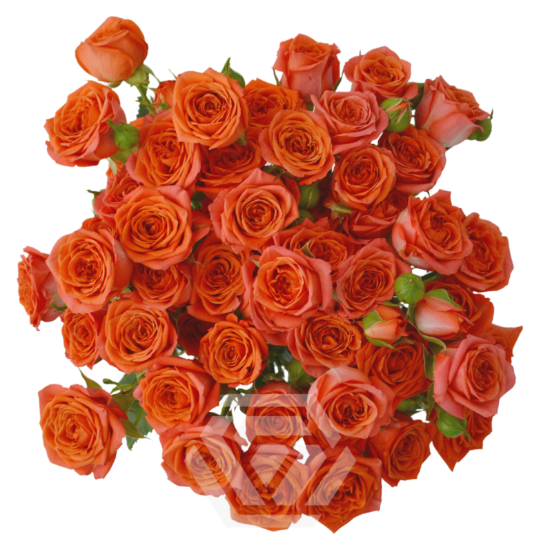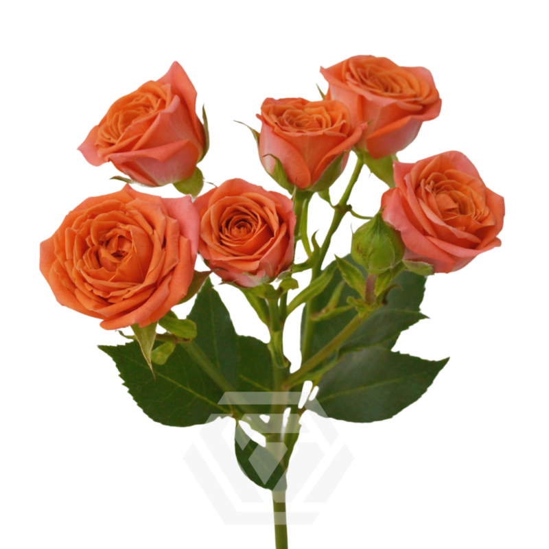 A fiery blend of orange and coral, this spray rose bursts with energy and bold character. Its vibrant color and full, rounded blooms make it a standout in dynamic arrangements—perfect for summer palettes, modern designs, or any bouquet that needs a lively, uplifting touch.