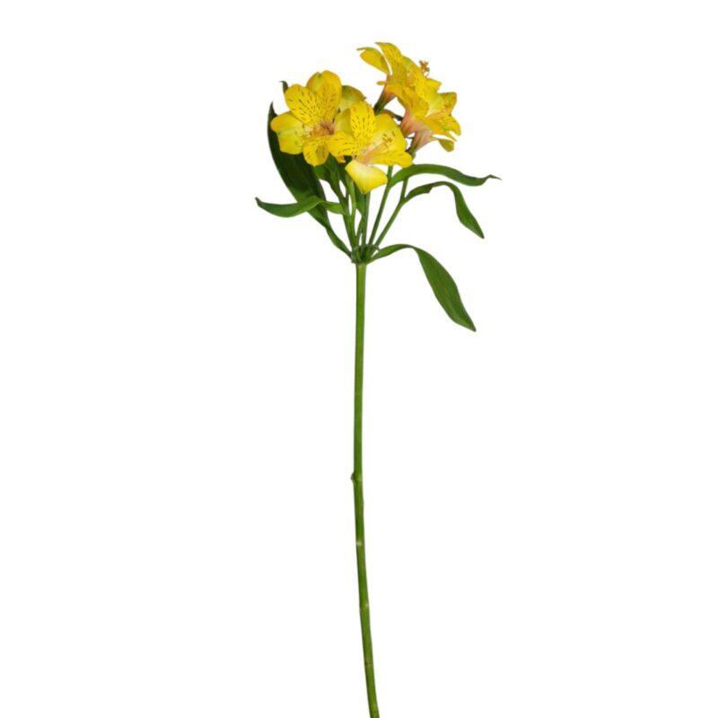 Жёлтая альстромерия Florida — это яркий цветок с насыщенными золотисто-жёлтыми лепестками и тёмными прожилками. Благодаря своей изящной структуре и стойкости, она придаёт радостный, свежий акцент букетам.