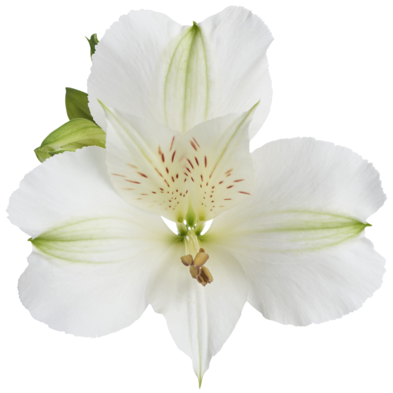 Альстромерия Mistral отличается чисто-белыми лепестками с лёгким зелёным оттенком, создавая свежий и элегантный образ. Каждый стебель формирует несколько цветков, придавая композициям объём и аккуратность. Прочные стебли и отличная стойкость в вазе делают Mistral надёжным и универсальным сортом.