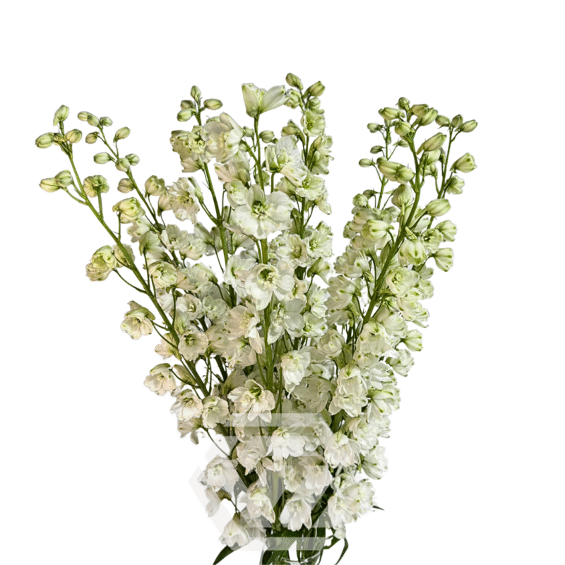 Delphinium Guardian White — изумительный цветок, известный своими высокими, изящными свечами чисто-белых цветков. Его грациозное, величественное присутствие придаёт утончённости и элегантности любой композиции. Благодаря нежным лепесткам и выразительной форме, этот цветок символизирует красоту и силу, идеально подходя для свадеб, юбилеев и торжеств.