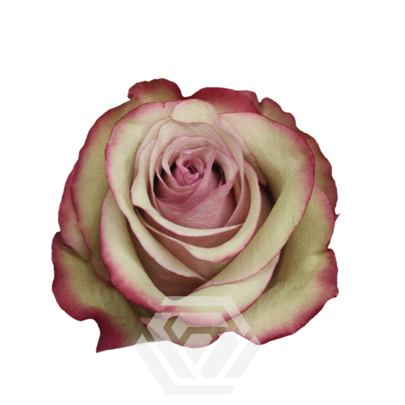 Этот сорт демонстрирует прекрасное сочетание кремовых лепестков с ярко-розовой каймой. Кремовая основа символизирует чистоту и утончённость, а розовая окантовка добавляет яркости и винтажного шарма.