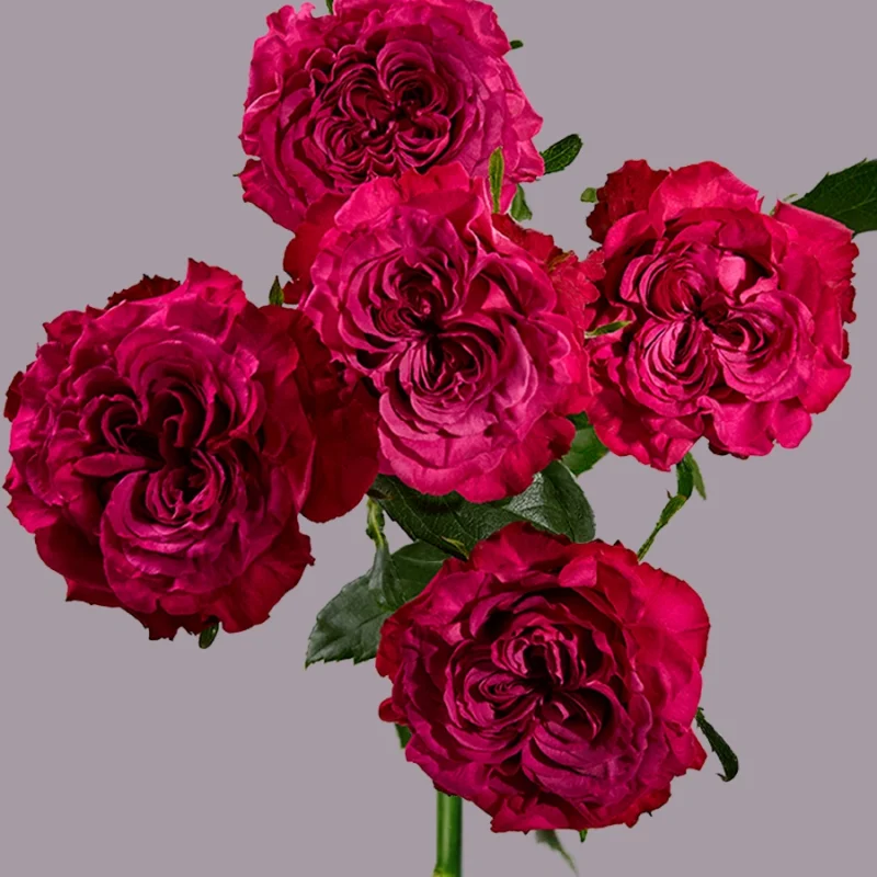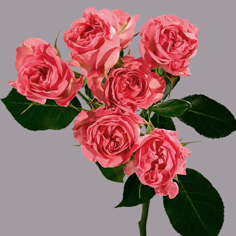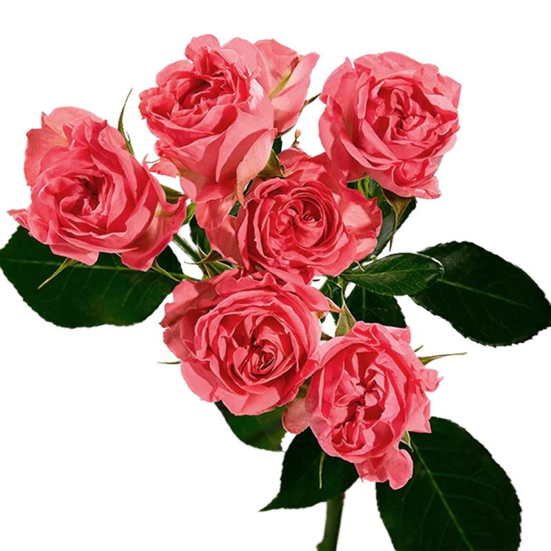 Мощная розовая садовая спрей‑роза с уникальными волнистами в бутонах, добавляющая элегантность любому дизайну.