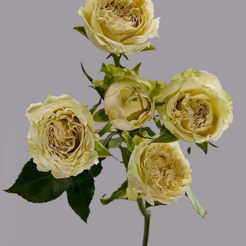 Мягкие и романтичные, спрей-розы Cream Flow отличаются тёплым кремовым оттенком, излучающим утончённость. Их нежные тона прекрасно сочетаются как с пастельными, так и с яркими цветами, добавляя нотку изысканной элегантности в букеты и центропьесы.