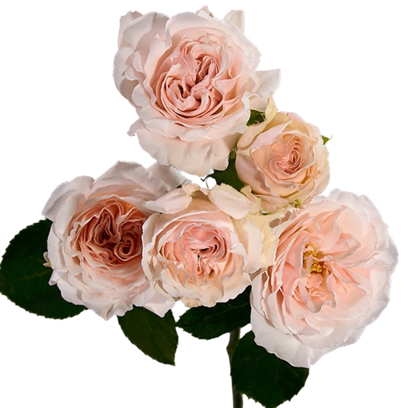 Boomie Gardens — нежный сорт кустовой розы с мягко-розовыми цветками и романтичным садовым видом. На одном стебле несколько бутонов, что создаёт естественный объём и лёгкость в композициях. Подходит для свадебных букетов, повседневной флористики и изысканных аранжировок.