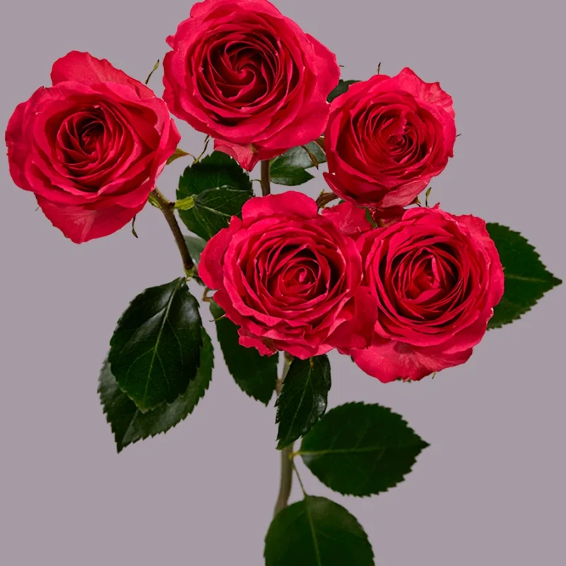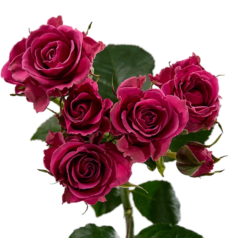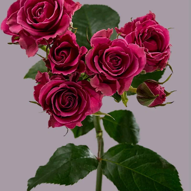Добавьте смелости с этой спрей‑розой, отливаясь пурпурно‑пунцовыми оттенками, идеально подходит для акцентных композиций с дерзким характером.