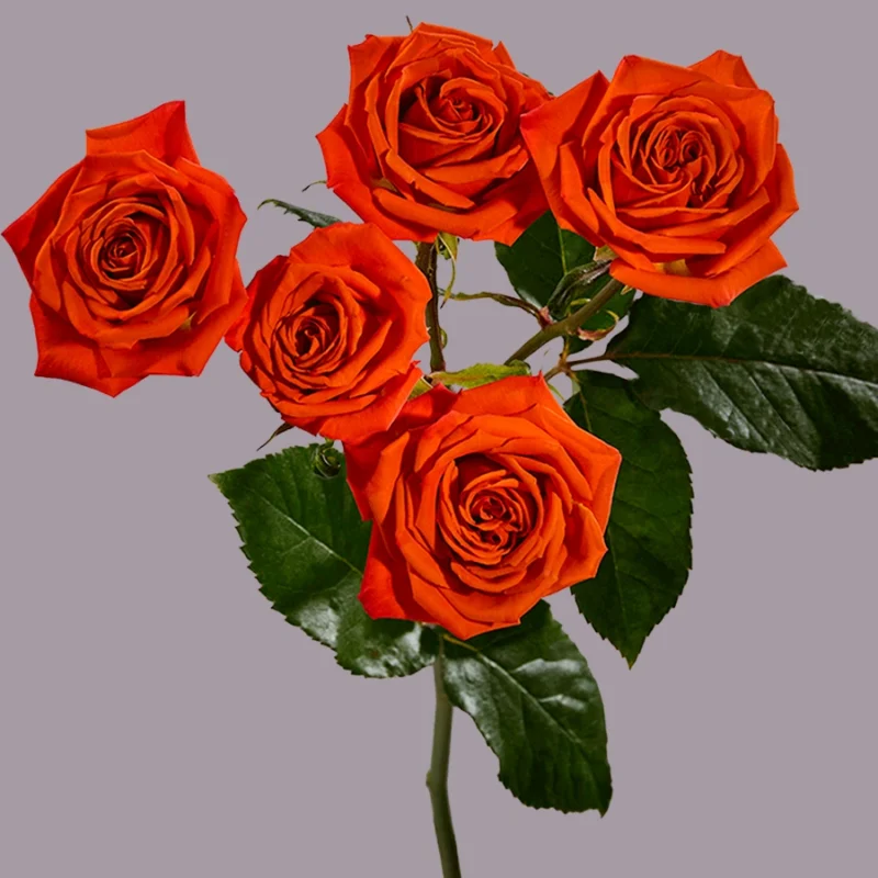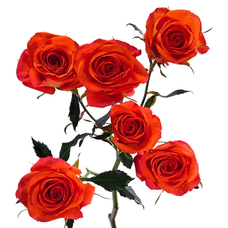 Смелая и контрастная спрей‑роза с глубоким розовым и огненным оранжевым центром. Придаёт композиции страсть и характер — для выразительных дизайнов.