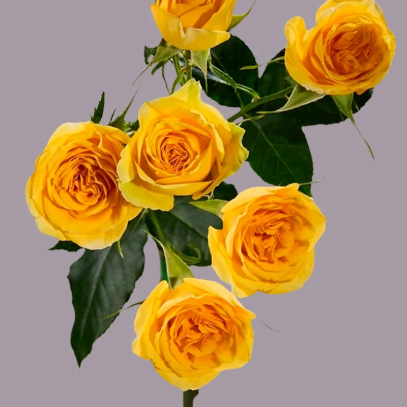 Сияющая оранжевая спрей‑роза с золотистым отливом, яркая, тёплая и энергичная. Динамичный цветок, придающий силу и свет как летним, так и осенним композициям.