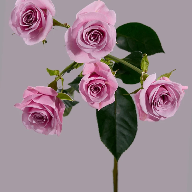 Младо‑розовая спрей‑роза с идеальной формой и раскрытием, отлично подходит для элегантных и вечных букетов.