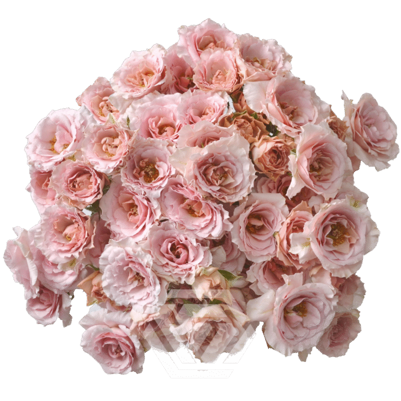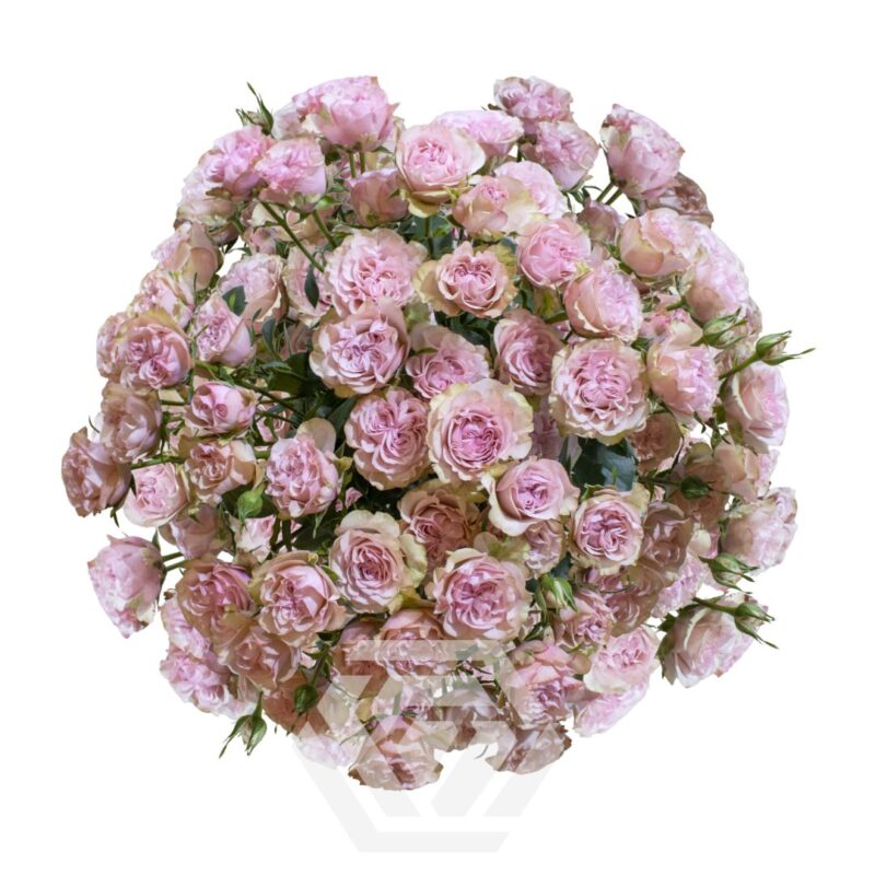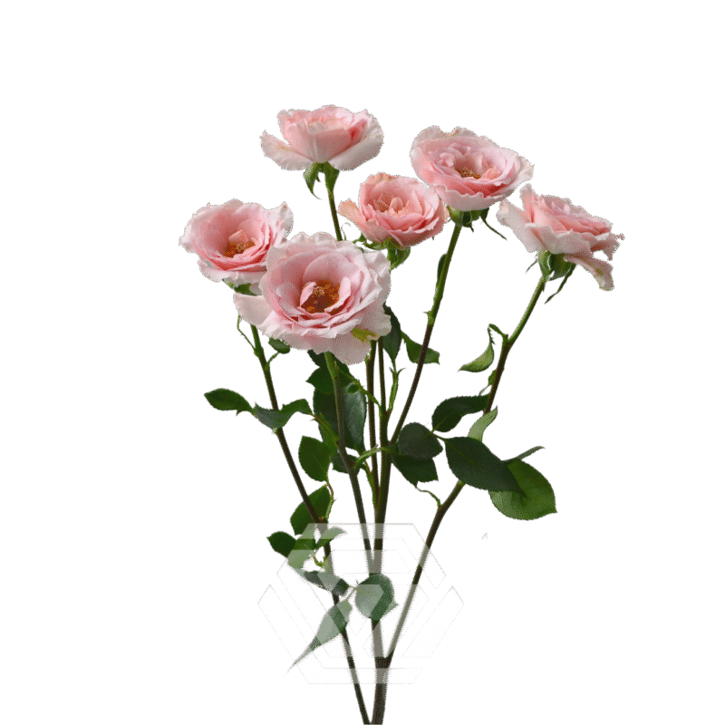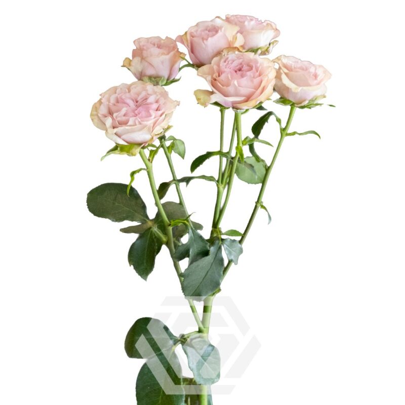 Светло-розовая спрей‑роза с крупными бутонами и совершенным раскрытием — символ нежности, доброты и трепета в композициях.