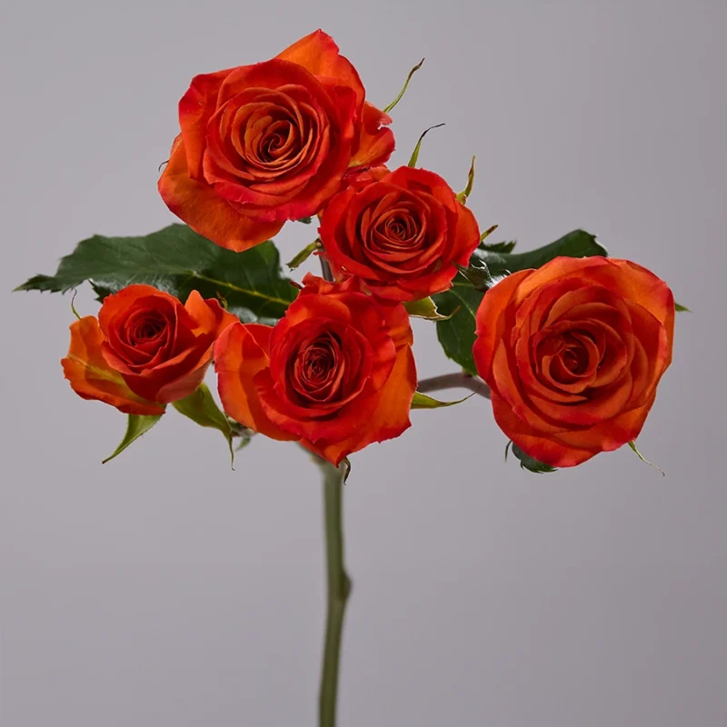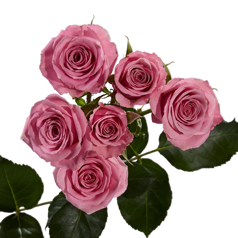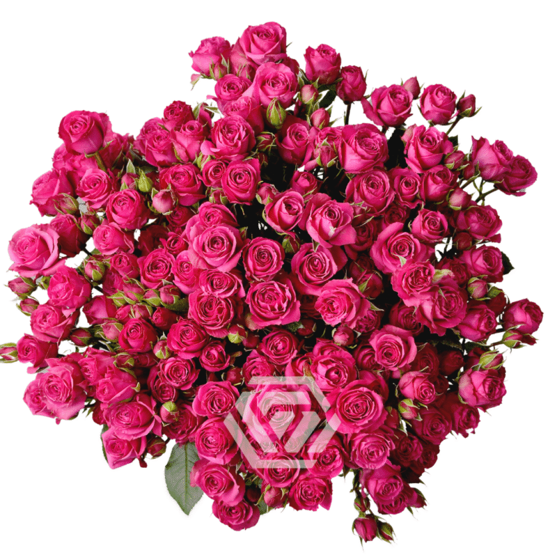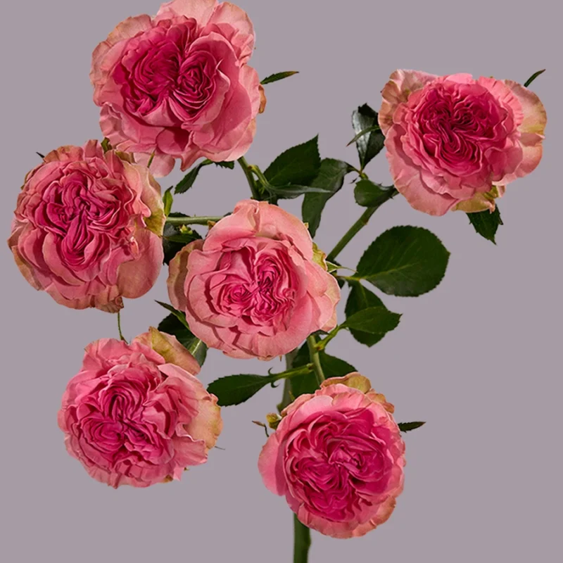Эта спрей‑роза предлагает насыщенный розовый румянец, выражающий восхищение и грацию. Идеальна для свадебных букетов или нежных повседневных посланий.
