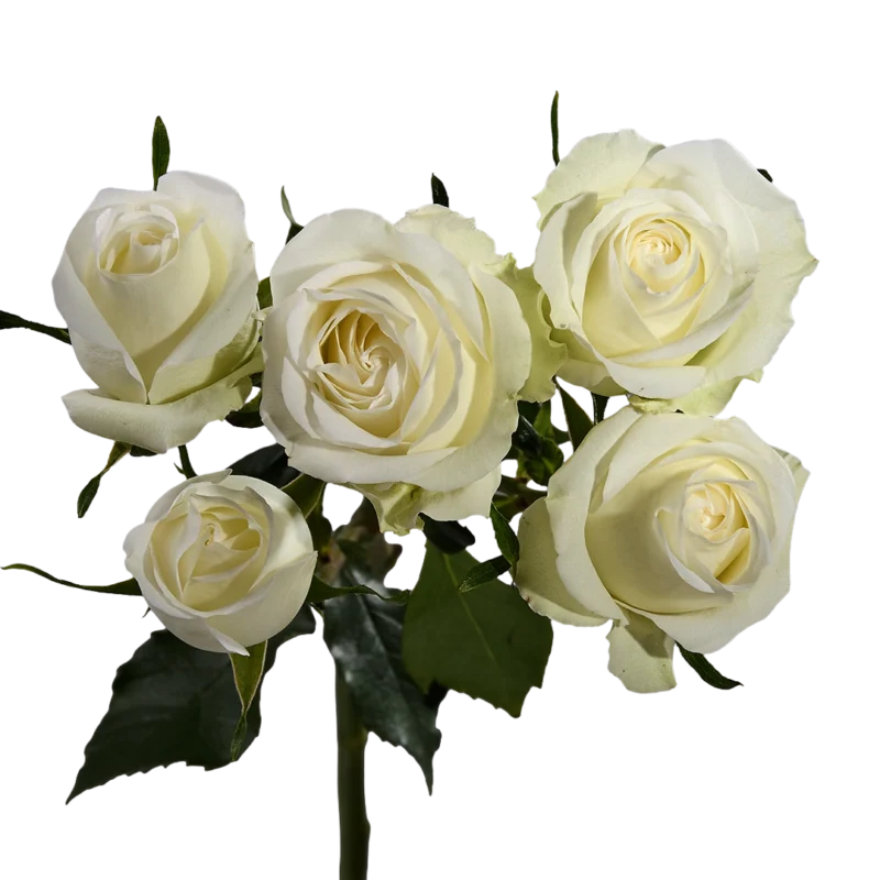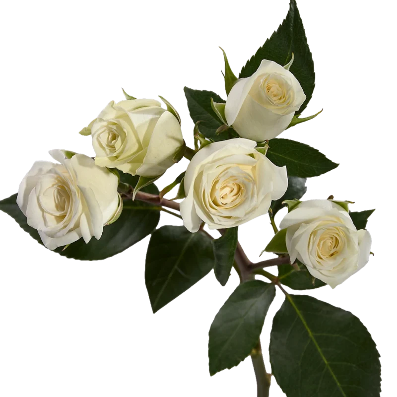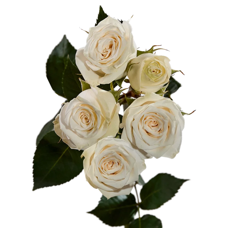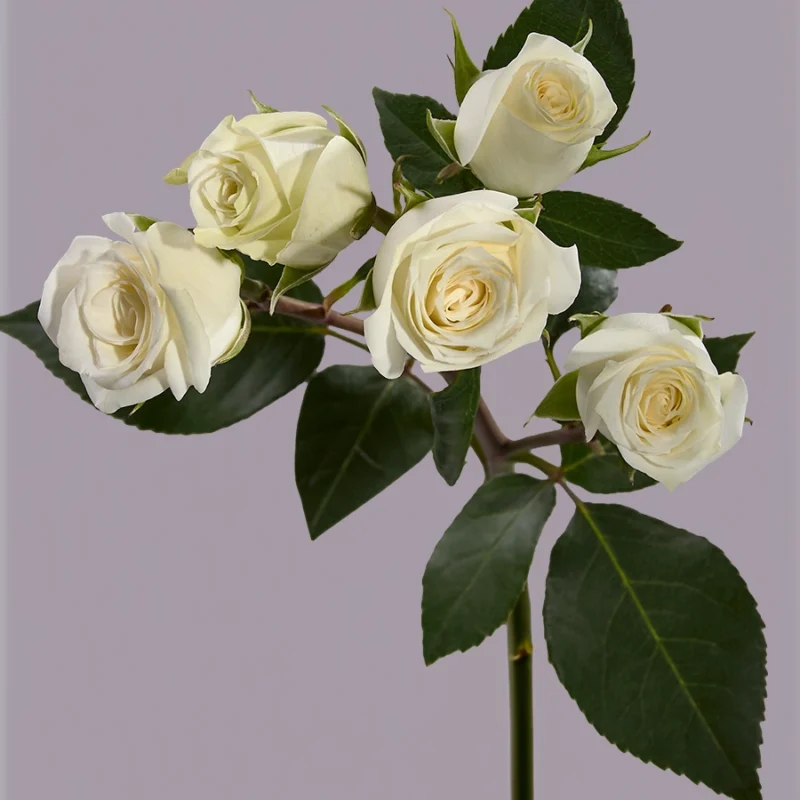 Истинная красота в безупречной белизне — эта спрей‑роза с крупными бутонами привносит утончённость в любую композицию.