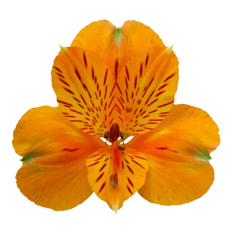Alstroemeria Gypsy — яркий сорт с оранжевыми лепестками и выразительными тёмными штрихами. Несколько бутонов на стебле, прочная структура и отличная стойкость делают её эффектным и надёжным выбором для флористики.