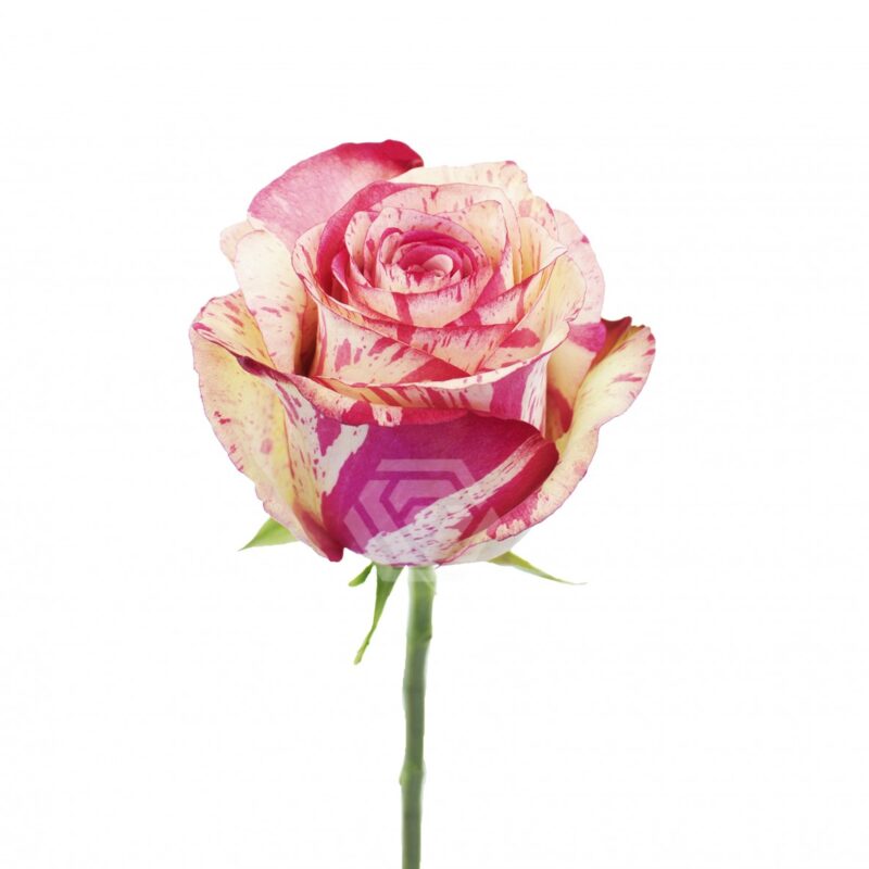 Magic Times — двухцветная роза высшего качества с кремовыми лепестками, украшенными розовыми всплесками. Она добавляет уникальности любому букету в любое время года.