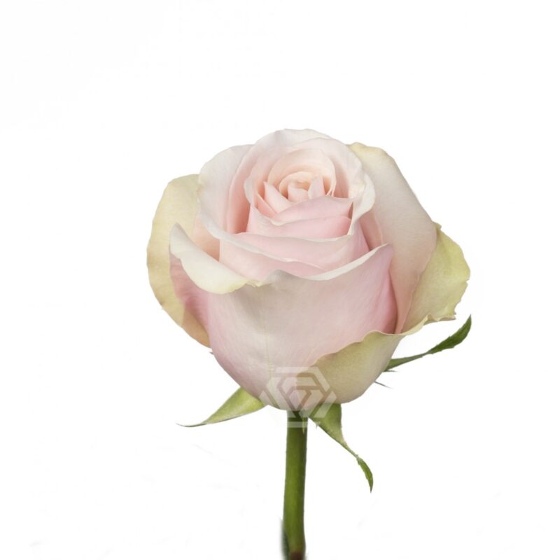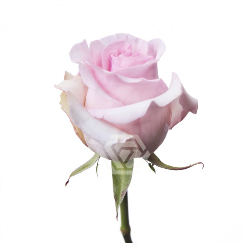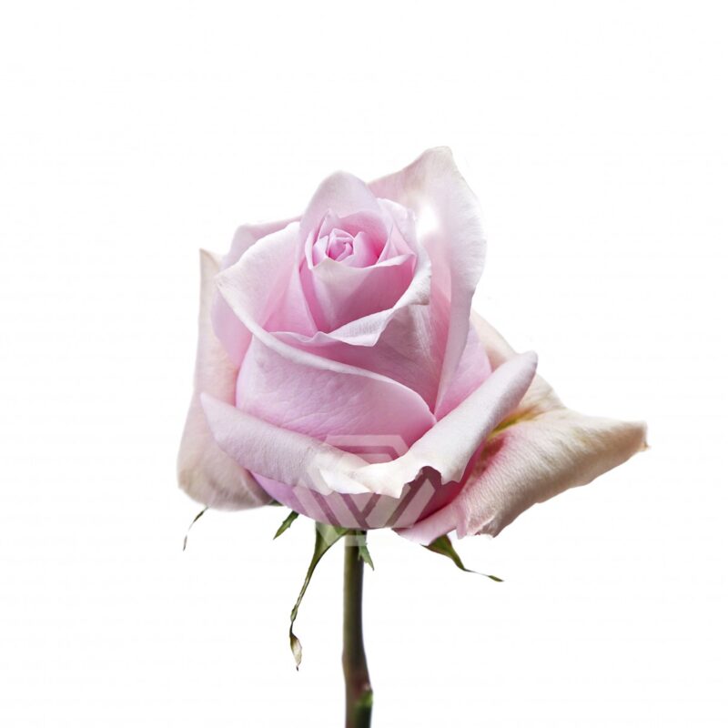 Изысканная роза нежно-розового цвета с яркими лепестками. Универсальна для композиций в любой сезон.
