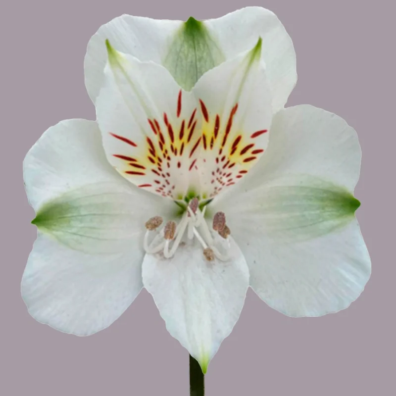 Alstroemeria Luzon features crisp white petals highlighted by warm yellow centers and fine dark markings that add contrast and definition. Each stem produces multiple blooms, creating fullness and balance in floral arrangements. Known for its strong stems and excellent vase life, Luzon is a reliable choice for clean, elegant designs and versatile mixed bouquets.