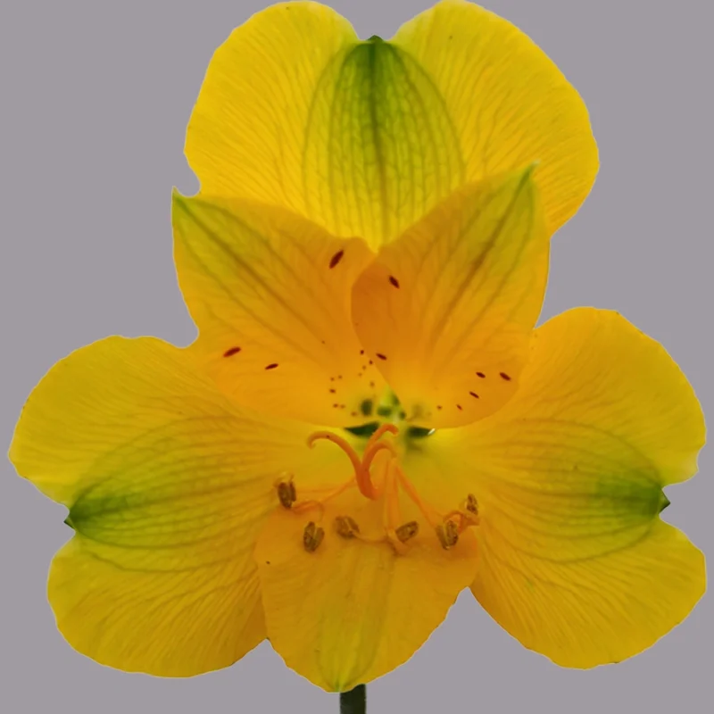 Alstroemeria Badalona captivates with its vibrant yellow petals, accented by soft green hues on the upper petals and subtle speckling for added character. This variety is known for its strong stems and excellent vase life, making it a reliable choice for both mixed bouquets and monochromatic designs.