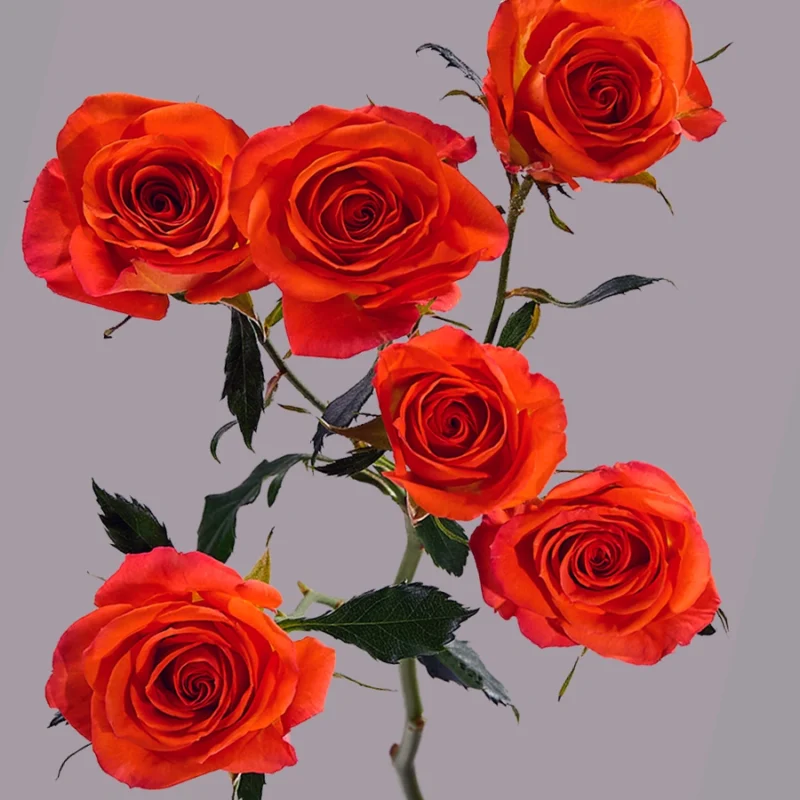 In glowing orange with golden undertones, a spray rose that is bold, warm, and full of energy. A dynamic bloom that brings strength and brightness to autumn and summer designs alike.