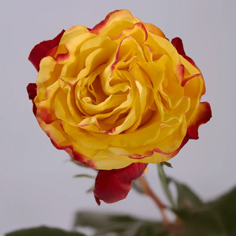 Sunny Lady shines in golden yellow with soft red freckles, full of warmth and joy. Her cheerful presence brings brightness and optimism to seasonal bouquets and sunny-day celebrations.