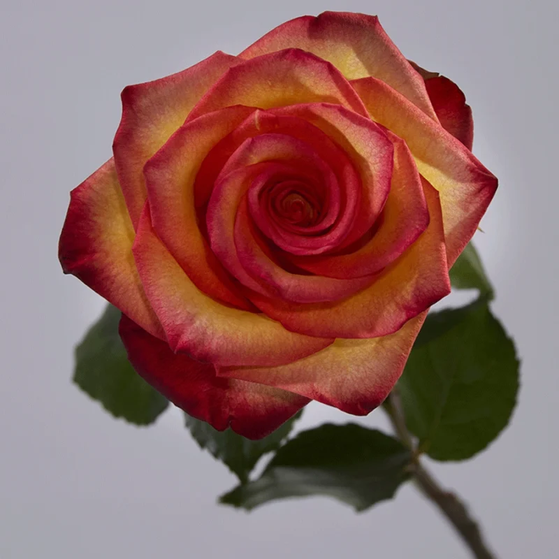 Bold and dramatic, the High & Magic rose captivates with its fiery blend of red edges and golden yellow centers. Known for its striking bicolor petals and long vase life, this rose adds a vibrant, energetic touch to any arrangement.