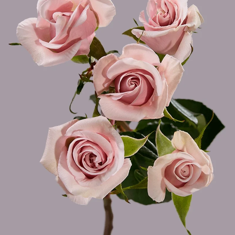 A light pink spray rose with large heads and the prettiest aperture, ideal for representing gentleness, kindness, and tenderness in flower arrangements.