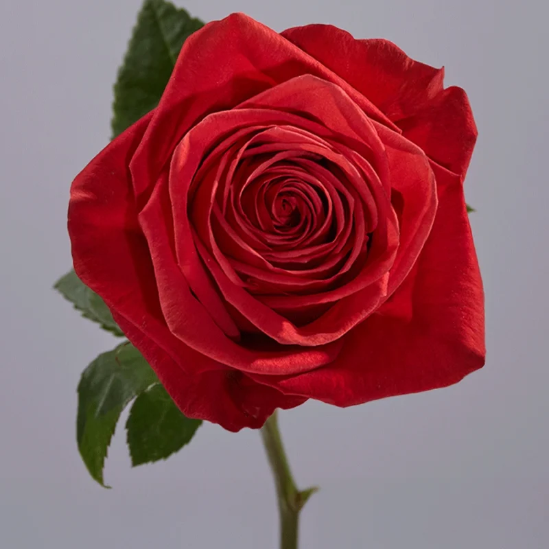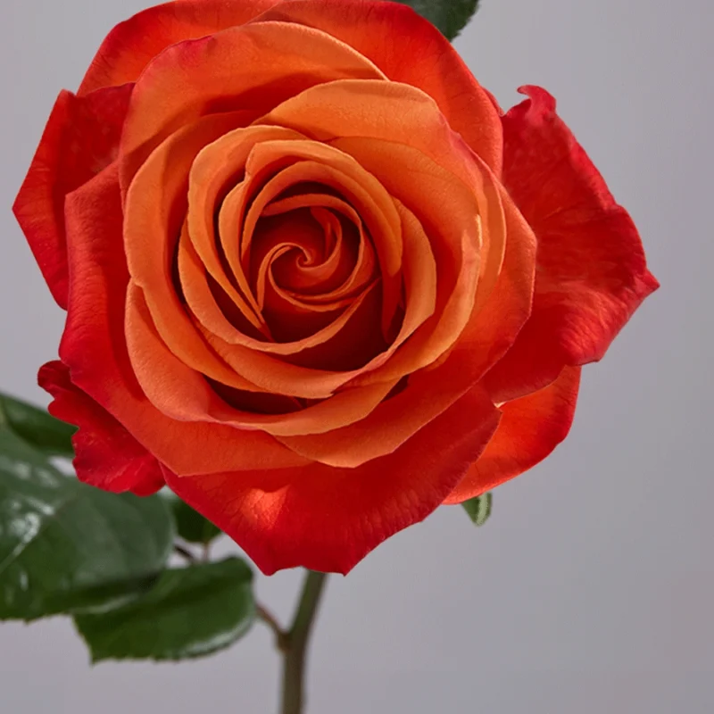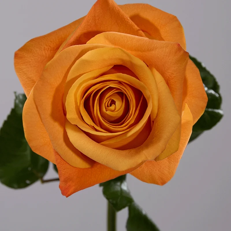 The New Face rose stands out with its vibrant orange color, featuring rich and warm tones that brighten any bouquet. Its petals have a smooth, velvety texture and open into a full, classic bloom.